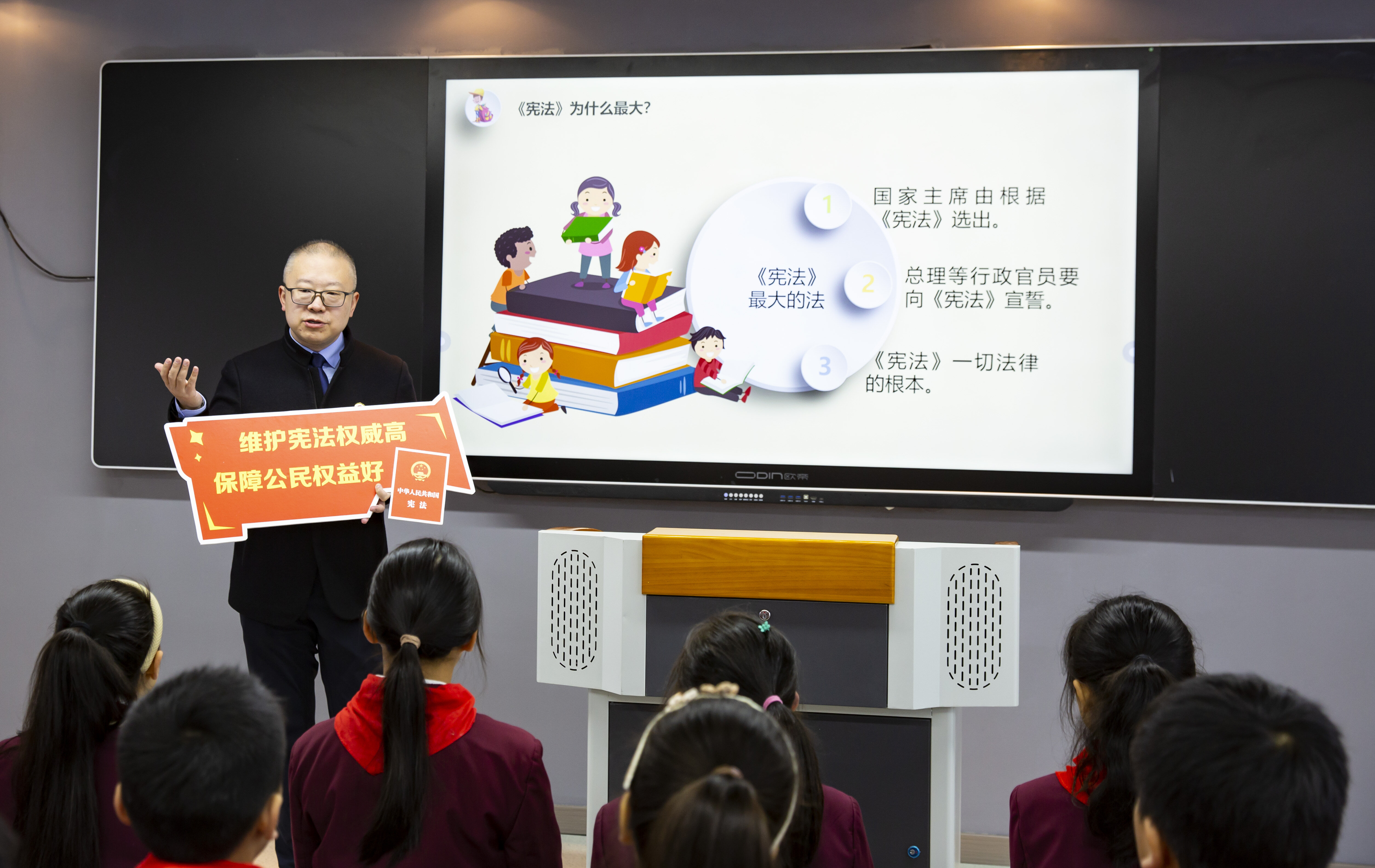 2024年12月3日,海安市城南实验小学东校区举办“宪法宣讲进校园”活动,来自该市城东镇司法所的相关工作人员,通过沉浸式普法,让学生们增强了尊法、学法、守法、用法的良好氛围,为青少年的健康成长筑牢坚实的法律意识。