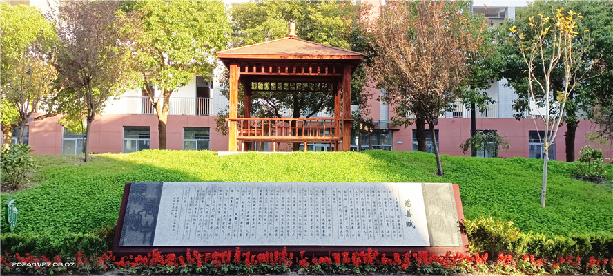 今年6月,学校获得以如东县马塘镇党委政府名义馈赠的马塘老街古石板。如今,这些承载着马塘故事与精神的石板已融入善园的“仁和小径”,使得咫尺之间却尽显人文底蕴,生动诠释着学校的善和文本课程内涵。园内,社科名人的“慈善赋石刻”古朴典雅,学生亲题的“上善亭”别具一格。往昔那荒芜杂乱的小土堆,经匠心改造,已化身为满溢文化气息的教育乐园。