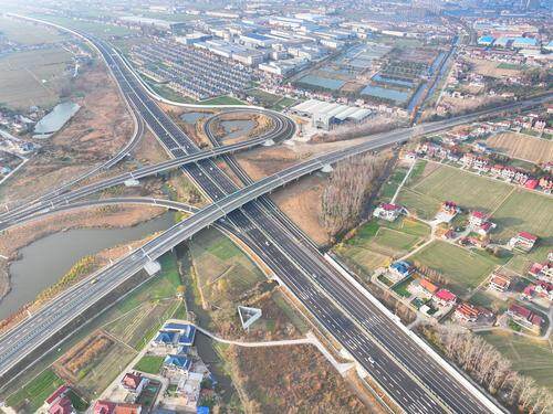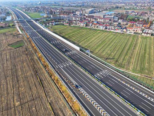 2024年12月18日在南通境内拍摄的沪陕高速公路平潮至广陵段扩建工程高速公路新貌。该扩建工程全部完工,即将交工。
