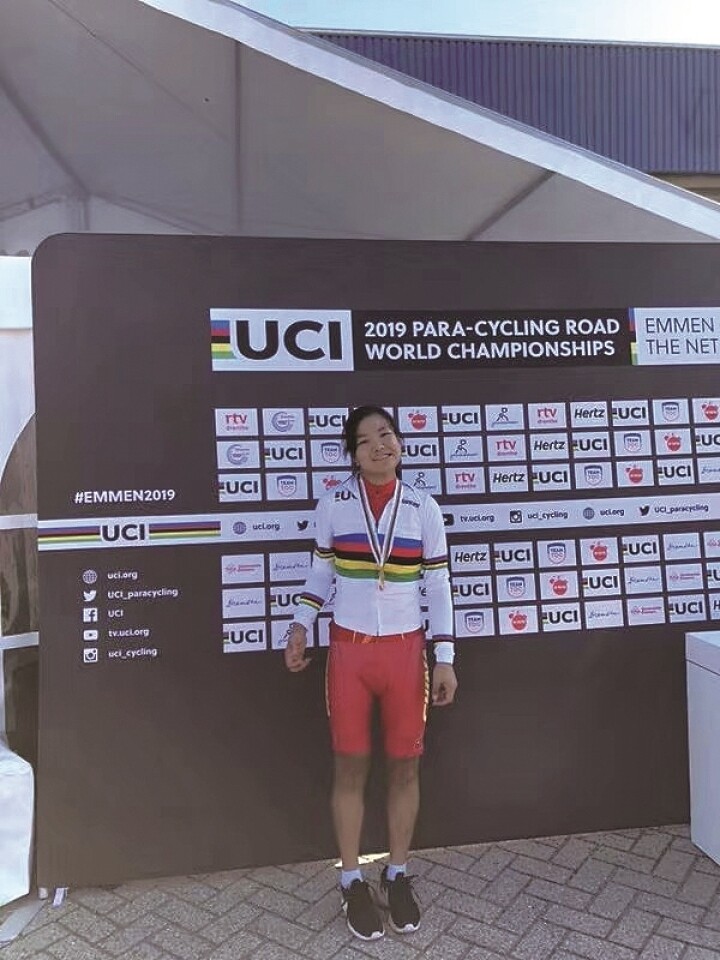 自行车运动员钱王伟,在2019年残疾人自行车公路世界杯上获得两个项目冠军,在2024年残疾人场地自行车世锦赛上获得了四个项目的冠军。