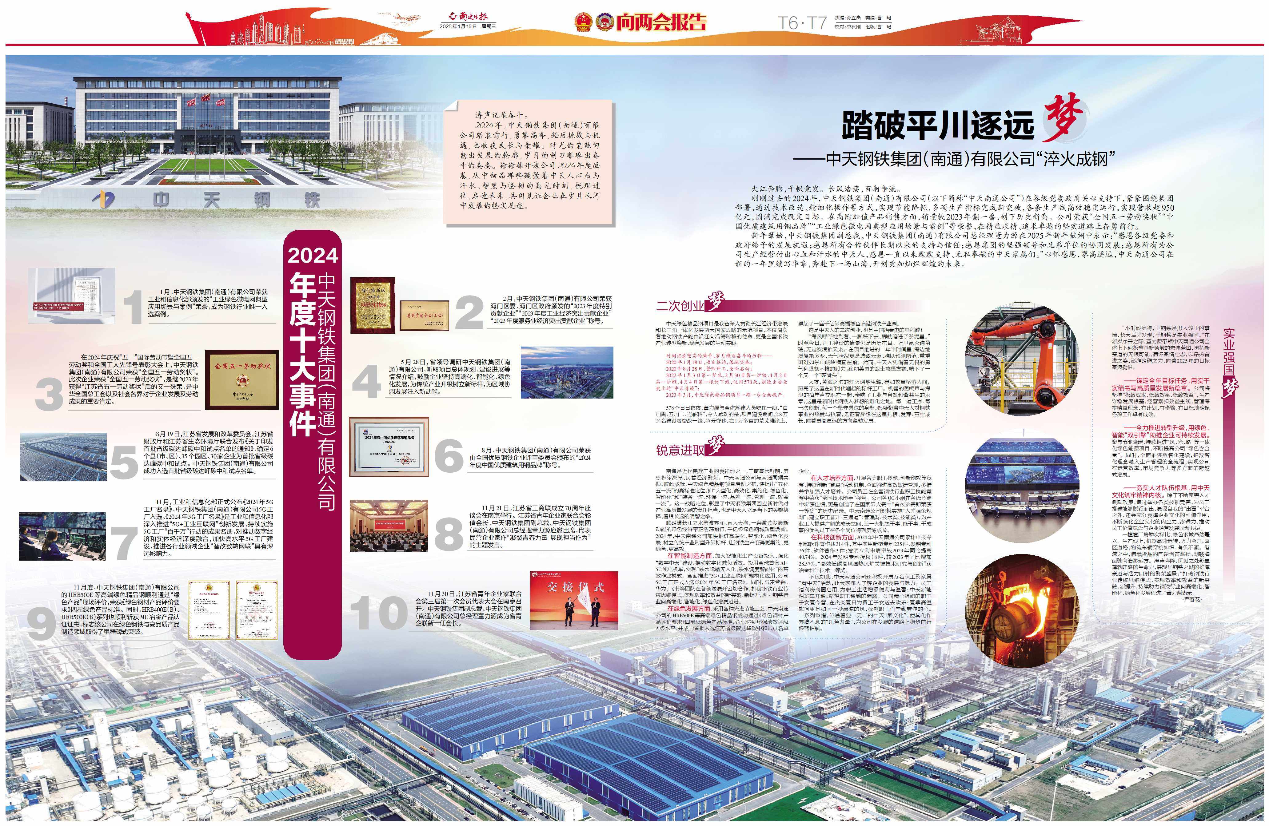 “小时候觉得,干钢铁是男人该干的事情,长大后才发现,干钢铁是实业强国。”在新岁序开之际,董力源带领中天南通公司全体上下积极擘画新领域的宏伟蓝图,勇拓新赛道的无限可能,满怀豪情壮志,以昂扬奋进之姿、澎湃磅礴之力,向着2025年的目标豪迈挺进。