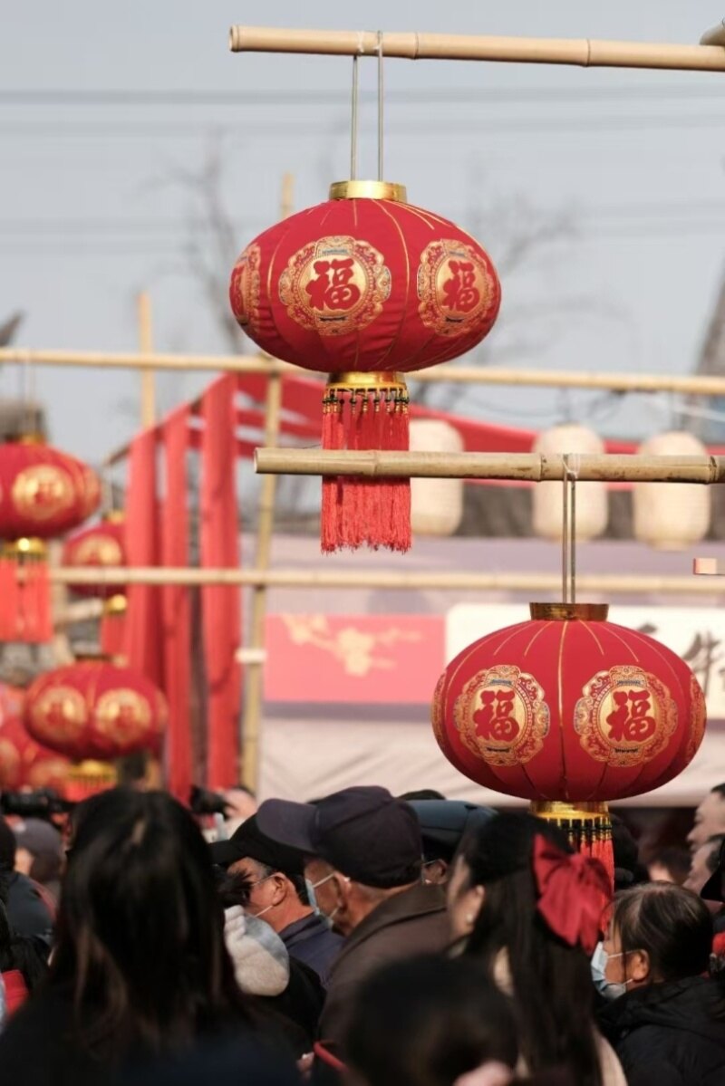 如今,唐闸古镇已化身为一座“活着的”博物馆,大生钟楼所在区域洋溢着浓浓的年味。春节期间,古镇北市景区热闹非凡,各种传统美食令人目不暇接。高高挂起的火红灯笼、烟火气十足的集市摊位,让儿时的年味仿佛穿越时空扑面而来。