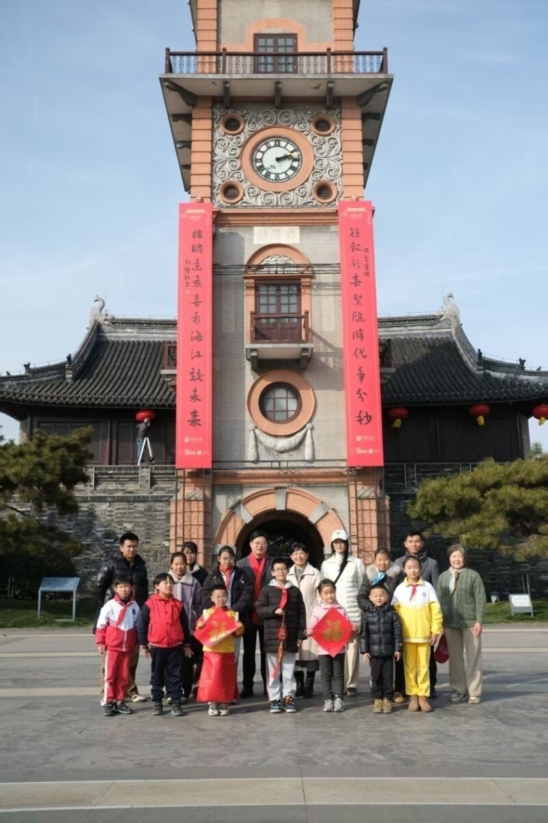 春节期间,位于城市中心的钟楼焕然一新,悬挂的喜庆春联为古老建筑增添了一抹亮丽色彩。“钟报新春,紧随时代争分秒;楼瞻远景,喜看海江竞未来。”此联由江苏楹联学会会员洪善宽精心撰写,江苏省书协副主席刘灿铭亲笔题写,不仅构思精巧、主题鲜明,更饱含着南通人民对新年的美好憧憬以及对未来发展的坚定决心。央视十佳春联获得者陶建锋在为小朋友解读春联时形象地提到,钟楼恰似深情的眼眸,静静凝视着这片土地,其背后是张謇对南通发展的殷切期望。上联紧密贴合钟的报时特性,寓意新年钟声传递吉祥,同时也鼓舞着人们要像张謇一样争分夺秒,为建设新南通贡献自己的力量。下联则呼应楼的登高望远之意,淋漓尽致地展现出南通在张謇奠定的坚实基础上,如今的繁荣昌盛之景以及对未来的美好展望。