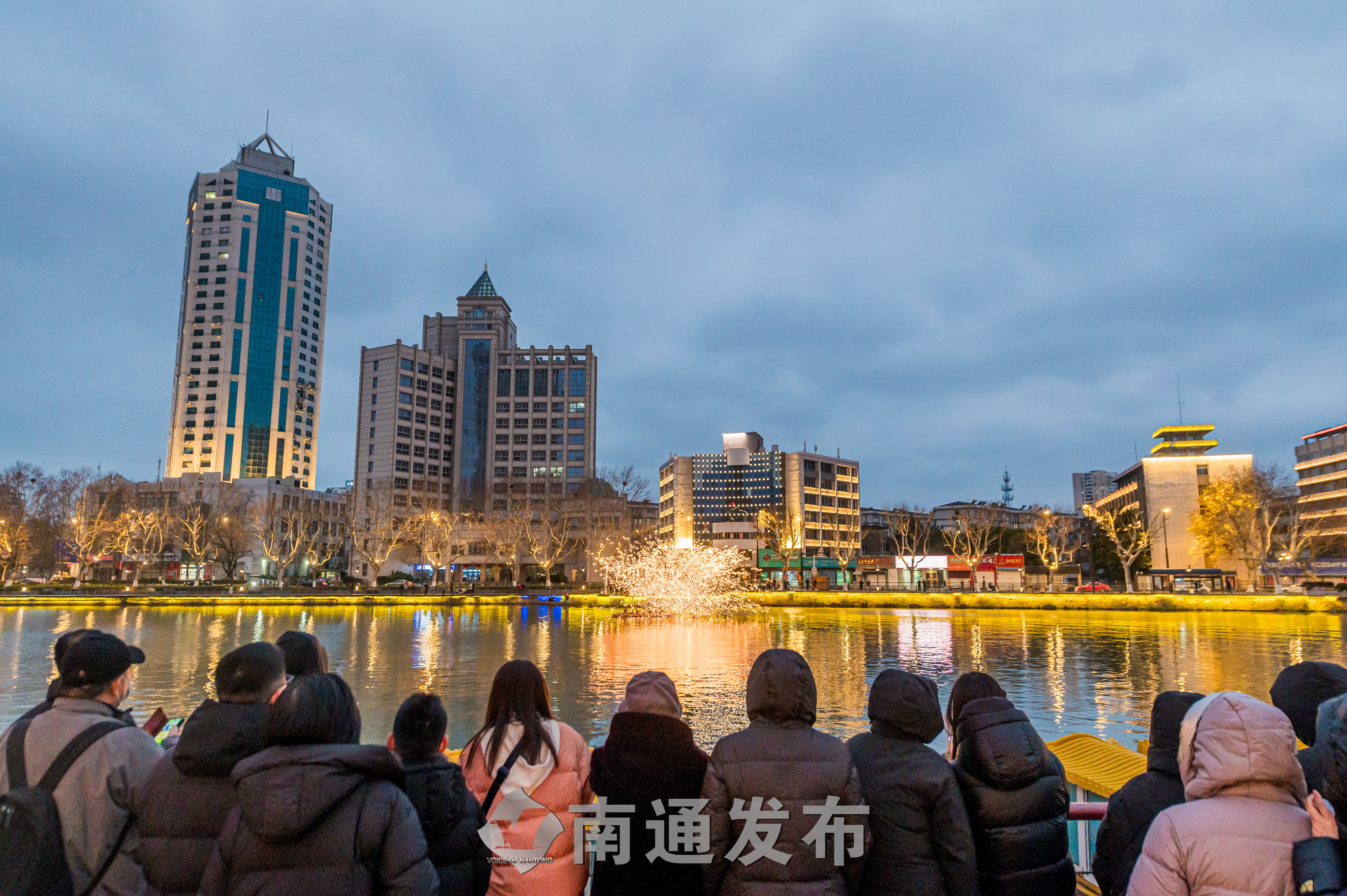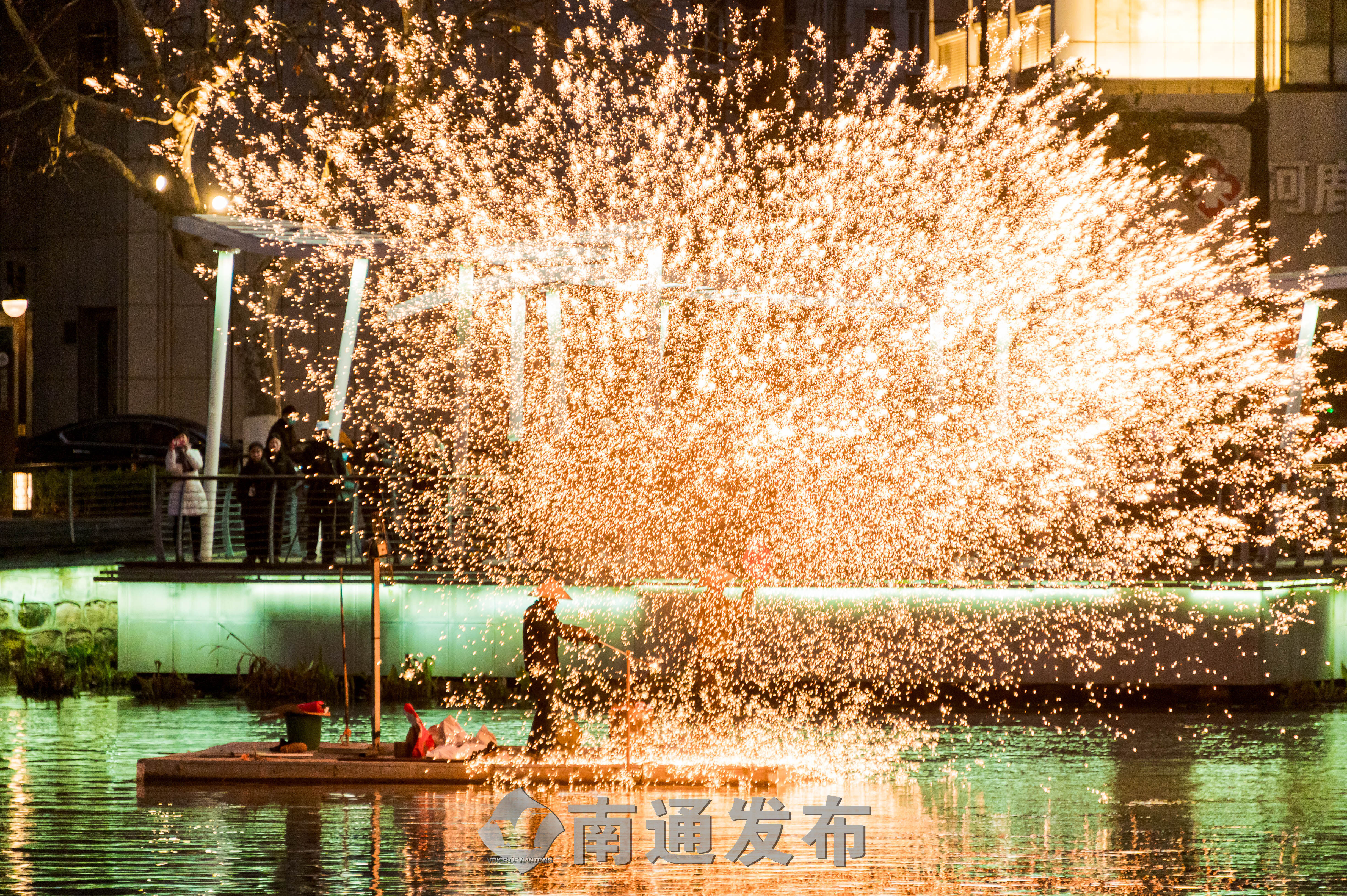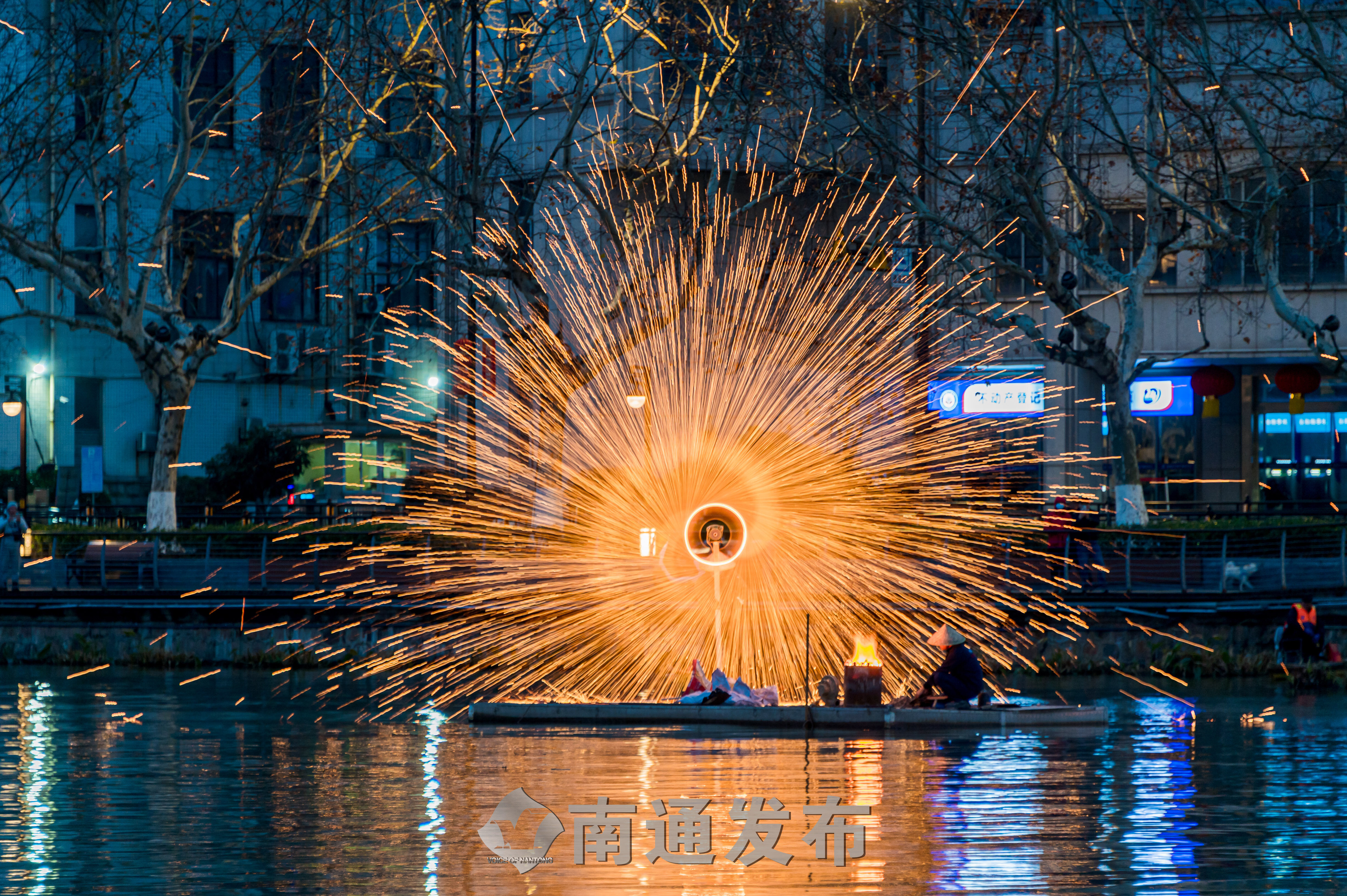 水上打铁花是一种独特的非遗艺术,被视为古老的烟火。濠河水面上的打铁花表演,让浓浓的年味儿在铁花飞溅中愈发醇厚。“还是第一次看到水上打铁花呢,真是美轮美奂,让人大开眼界。”市民于女士带着上小学的丫头前来游玩,被绚丽的水上铁花秀深深震撼。