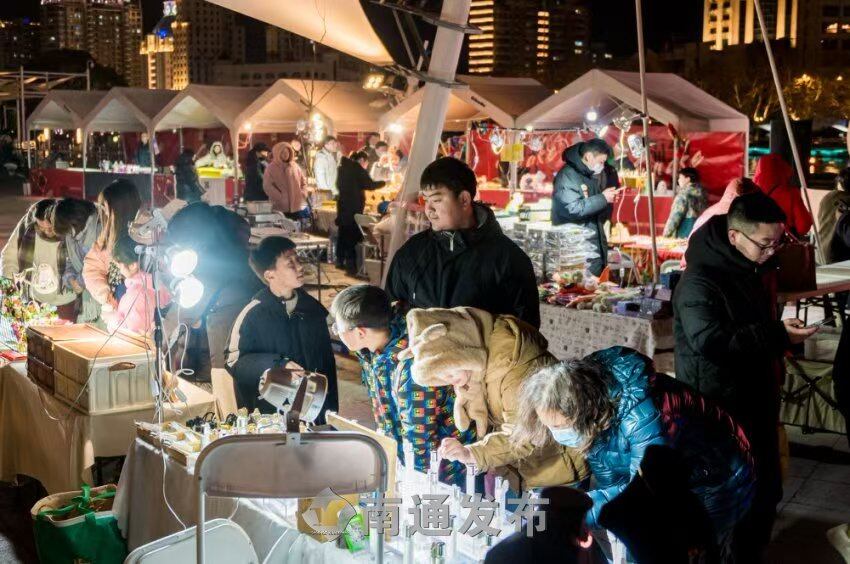 台湾蚝蛋烧、东北鸡蛋汉堡、厦门蚵仔煎、盐城鸡蛋饼、温州口蘑虾滑、东北烤冷面……新春市集上,各地美食集结,叫卖声、欢笑声连成一片,市民游客们徜徉在幸福的味蕾里。“过年嘛,就是要吃吃喝喝、玩玩乐乐,这不,不出南通,也能吃上各地美食,感谢政府的用心良苦。”市民吴建华带着妻儿老小外出游玩,对“福到喜市”活动啧啧称赞。