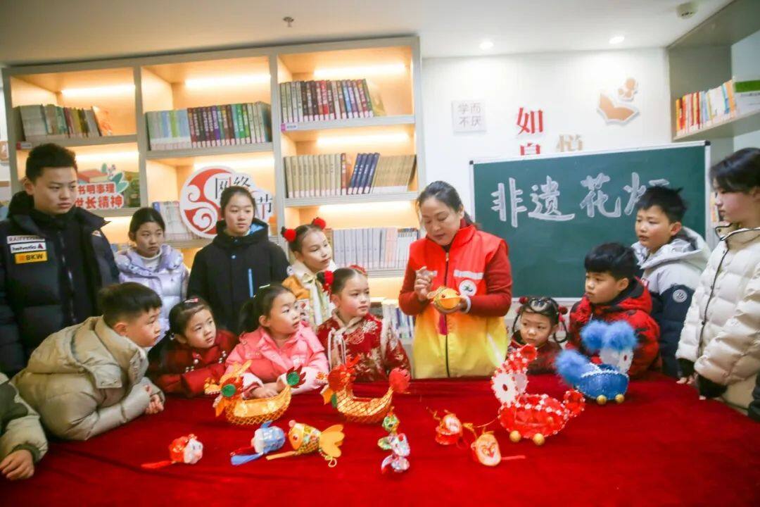 如城街道新时代文明实践所和城南街道育华村农家书屋开展“非遗花灯迎元宵”活动。学生们学习非遗花灯知识,制作花灯,感受传统文化的魅力。