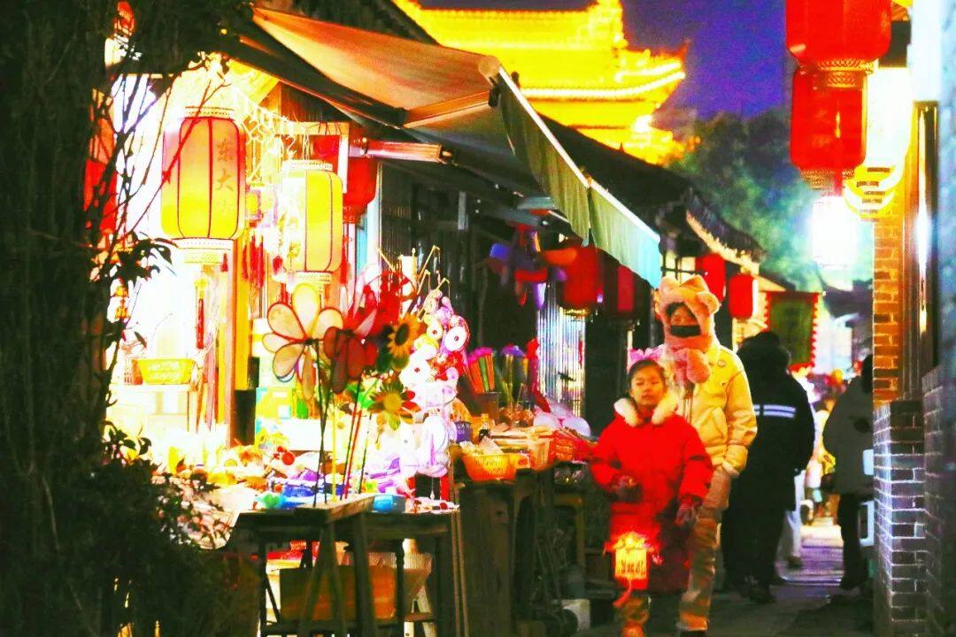 缀满了星星点点的彩灯,如同繁星落入人间,如梦如幻。在感受古城千年韵味的同时,也期许着新的一年好运连连。