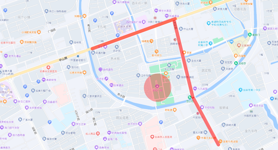 ▲中山路、海阳路和安定广场周边