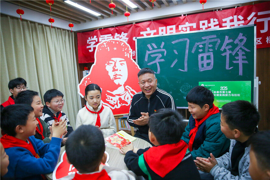 “每年的3月5日是什么日子?”“雷锋叔叔是一个怎样的人?”……崇川区文峰街道老干部讲师团讲师蒋春昇带领学生们学习雷锋的生平事迹和奉献精神。一代人有一代人的雷锋,一个地方也有一个地方的雷锋,蒋春昇声情并茂地讲述了中国好人吴锦泉、江苏好人胡汉生和南通雷锋车队的感人故事,倡导学生们从身边小事做起,在新时代践行雷锋精神。
