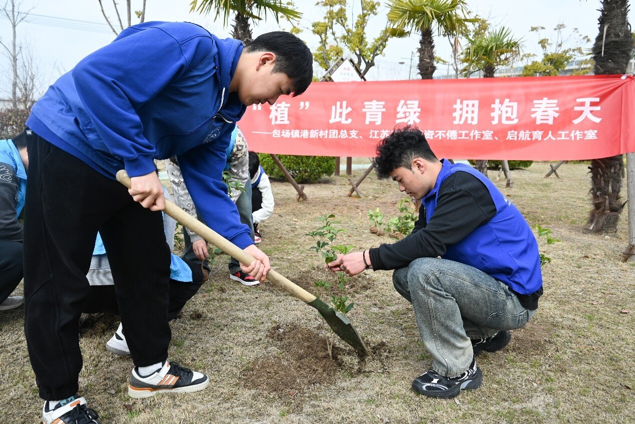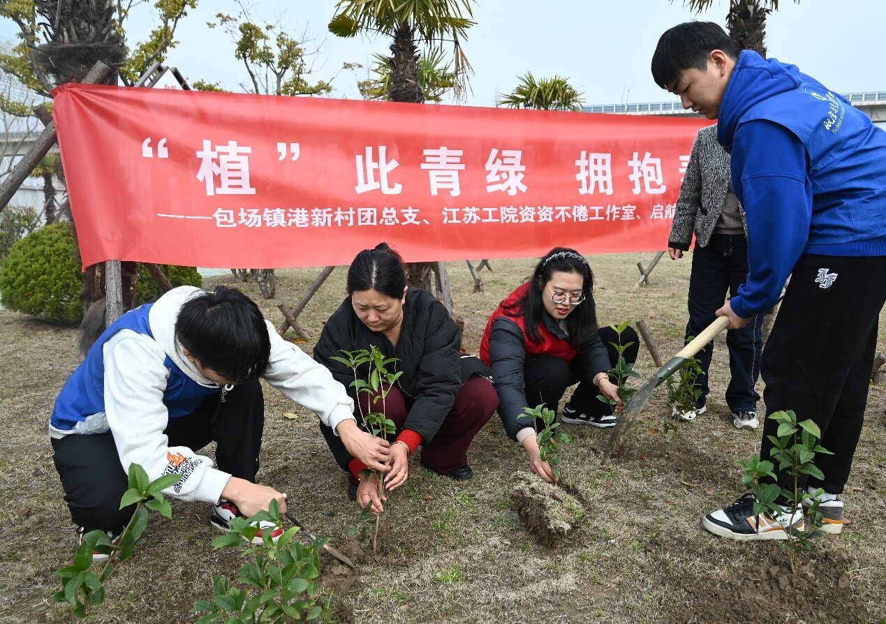 11日上午,江苏工程职业技术学院“资资”不倦发展型资助工作室、启航育人工作室召集学院资助宣传大使、团员青年、入党积极分子与海门区包场镇港新村团总支携手开展了“植此青绿 拥抱春天”植树节主题活动。