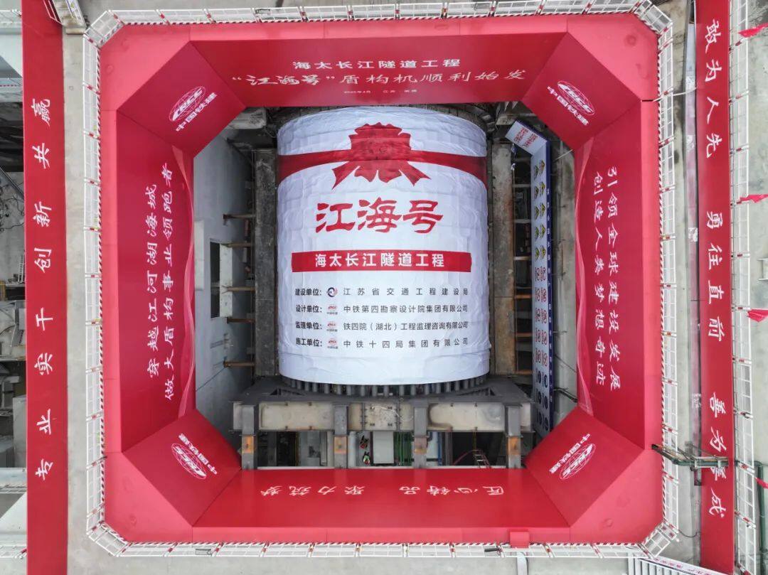 海太长江隧道位于江苏省长江入海口区域,北起南通海门区,南至苏州太仓市,过江隧道长11.185公里,采用双向六车道高速公路设计标准,设计速度为100公里每小时。其中中铁十四局负责的盾构隧道段长9315米,采用一台16米级超大直径泥水平衡盾构机“江海号”进行施工。