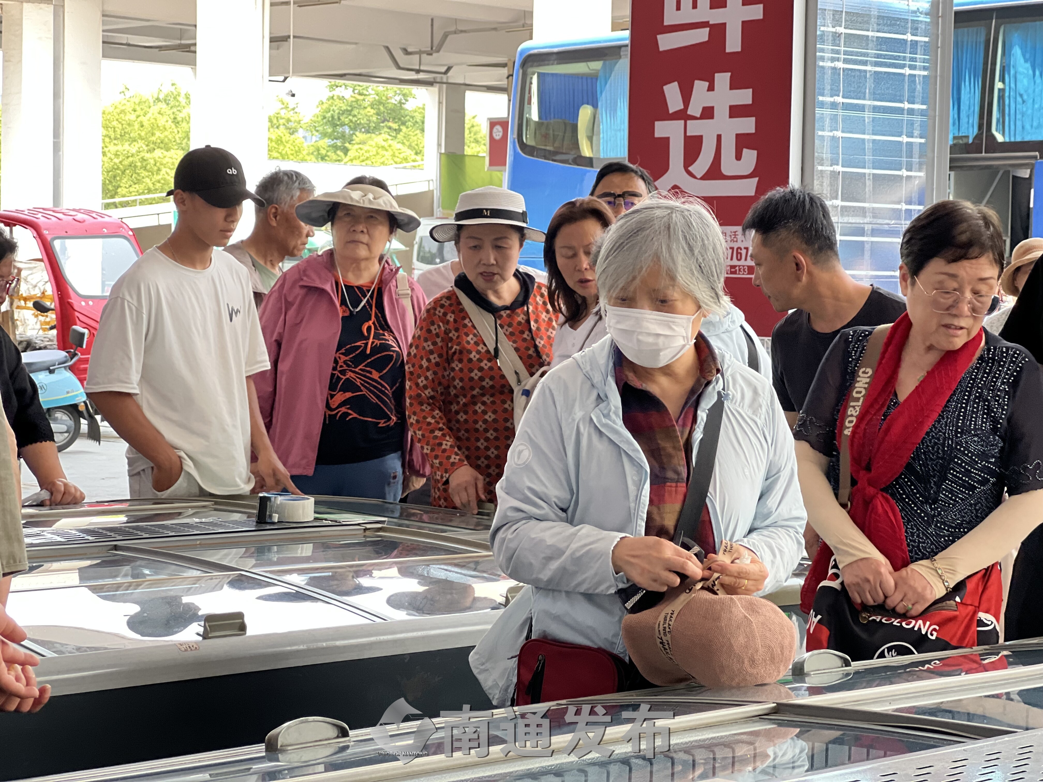 5月30日上午9点30分左右,两辆来自上海的大巴车缓缓驶入南通沿海集团沪蔬通农副产品批发市场,60名沪上老人拉着小推车前来“跨省买菜”。端午前夕,农批市场因这波客人的到来显得更加热闹。经营户们打起精神,忙得不亦乐乎,市场供销两旺。