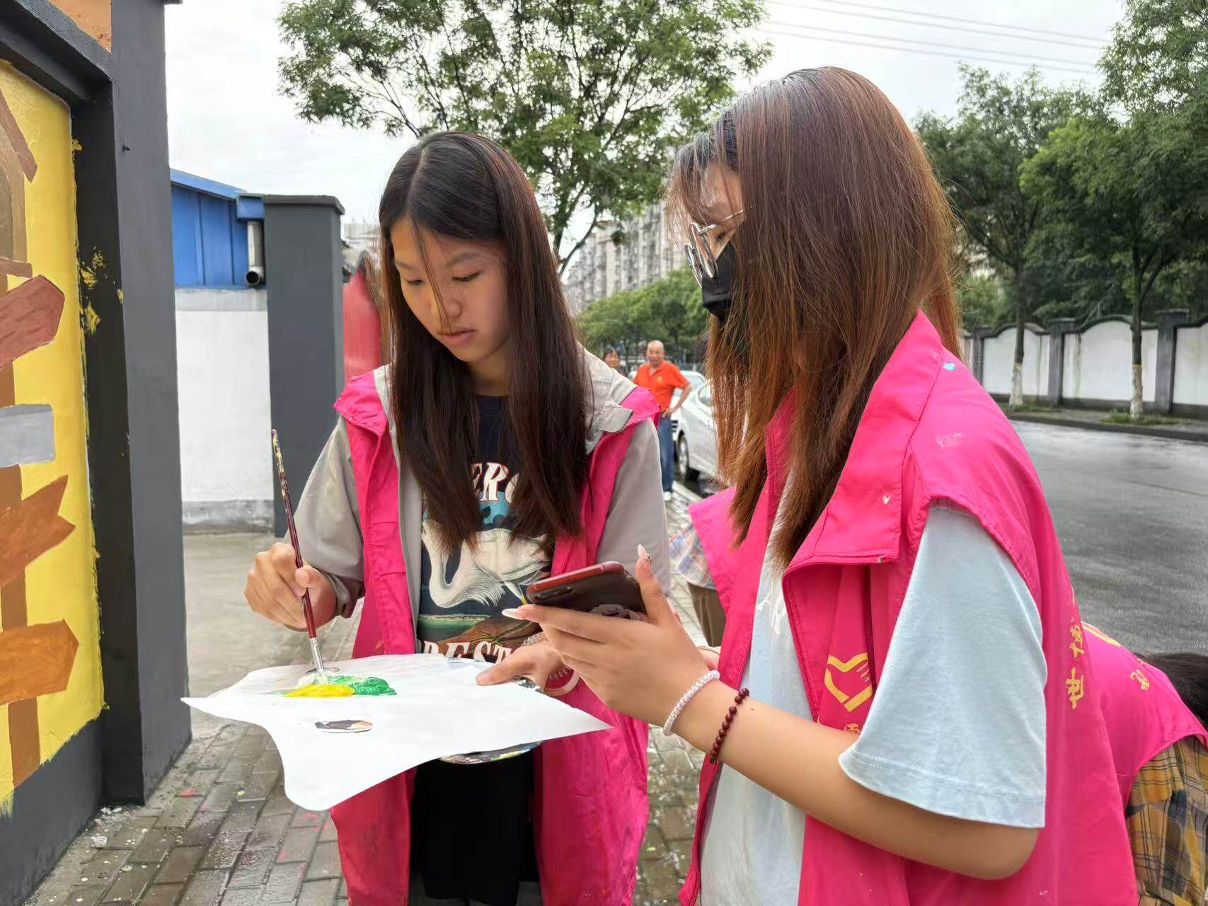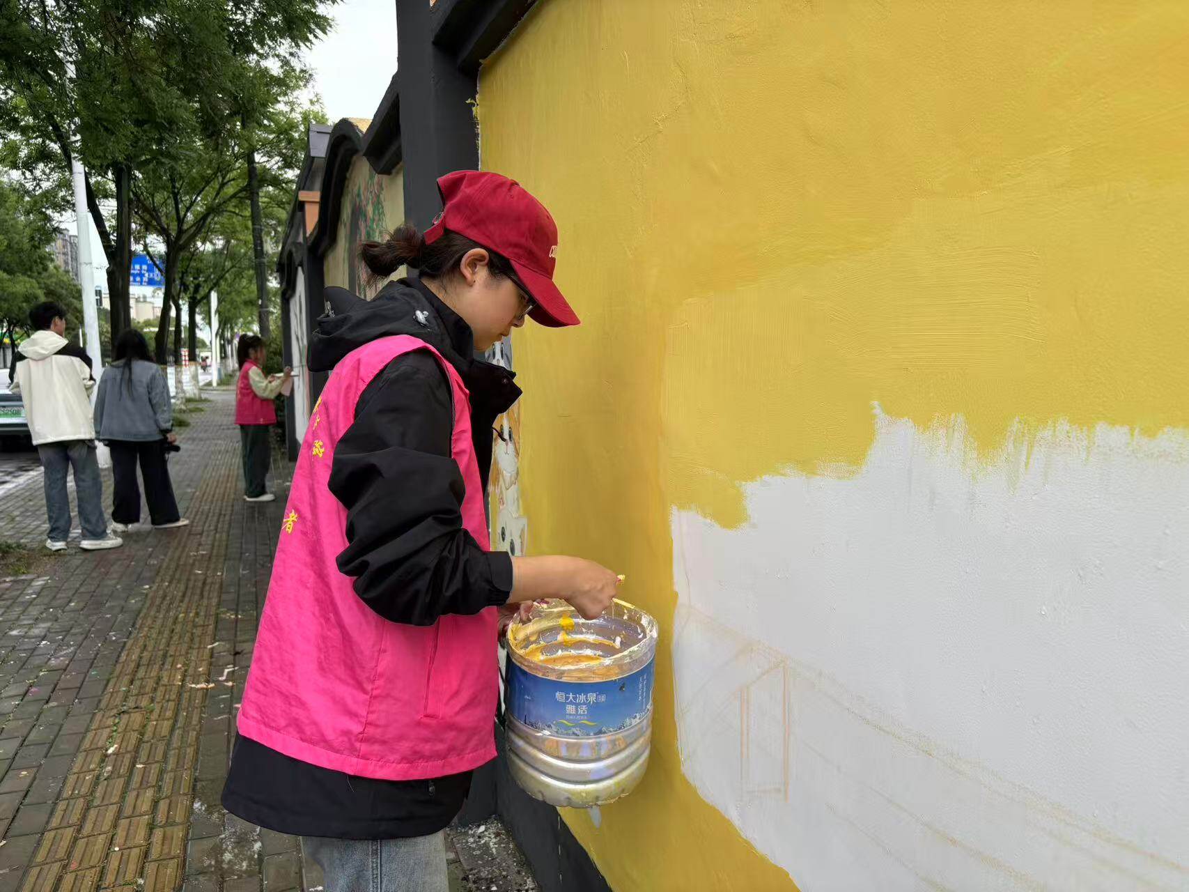 “丙烯颜料搭配环保乳胶漆,既保色彩持久又兼顾安全。”世博艺术与传媒学院分团委书记成嘉钰介绍材料创新细节,她认为,这次墙绘活动为学生提供了艺术实践机会,还将地方文化特色融入作品中,潜移默化传递正能量。