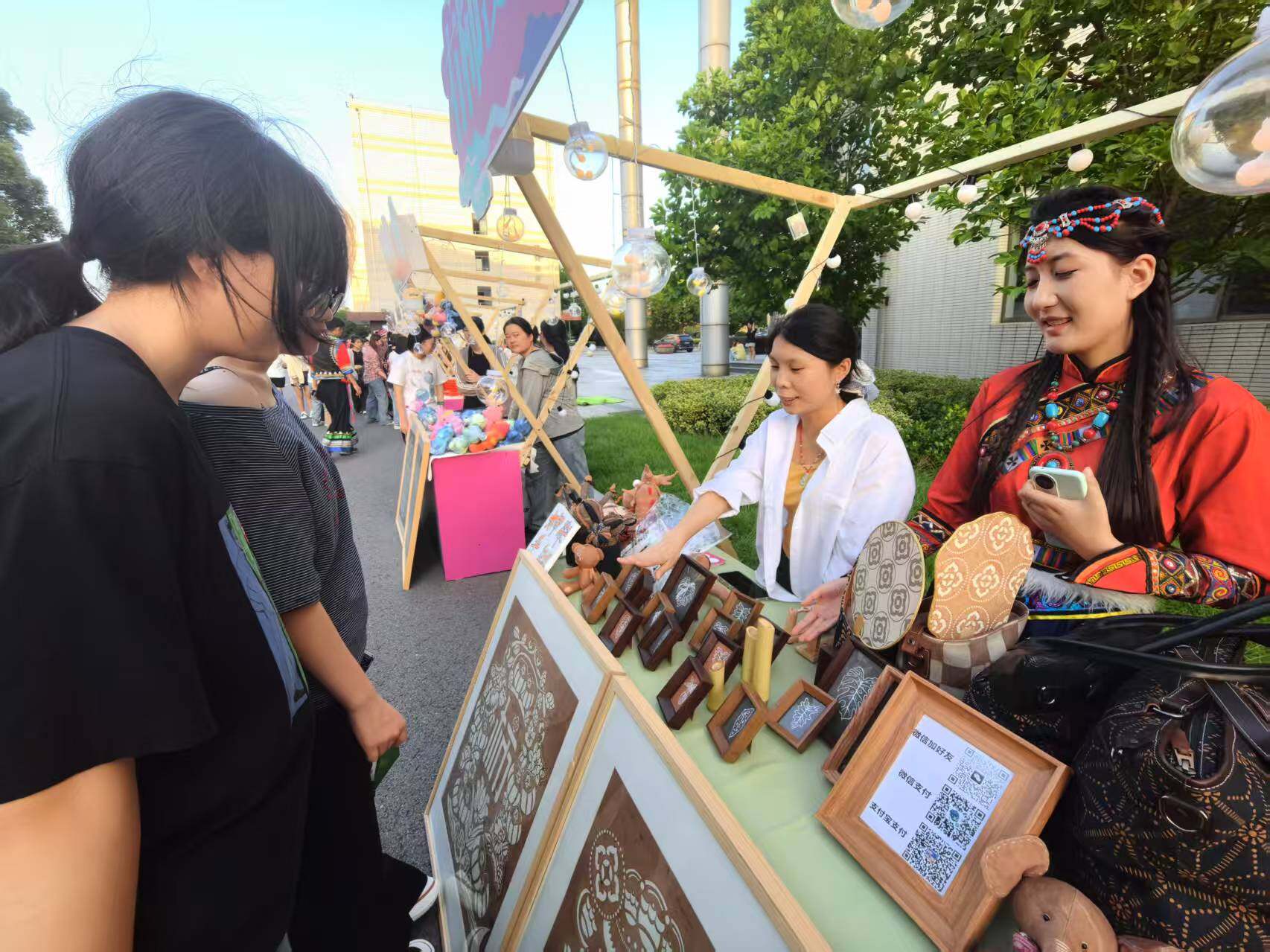 截至目前,江苏工院正通过创意摆渡产品创新与孵化中心等平台,利用沉浸式研学、美育成果展演、艺术名家讲堂等多元载体,推动课程教学改革创新,构建“理论浸润—实践体验—成果转化”的立体化教学场景,有效提升学生课堂参与度与教学实效。该校学生制作的板鹞风筝文创作品,获得市非遗文创设计大赛一等奖,获奖作品落地成为了真体面、有脸面、上台面的南通非遗“伴手礼”。“很高兴看到我的非遗设计能够转化成产品,并受到大家的喜爱,让我更加有信心面对今后的‘创意设计之路’。”正在市集上展示作品的毕业生江瑾涵说。
