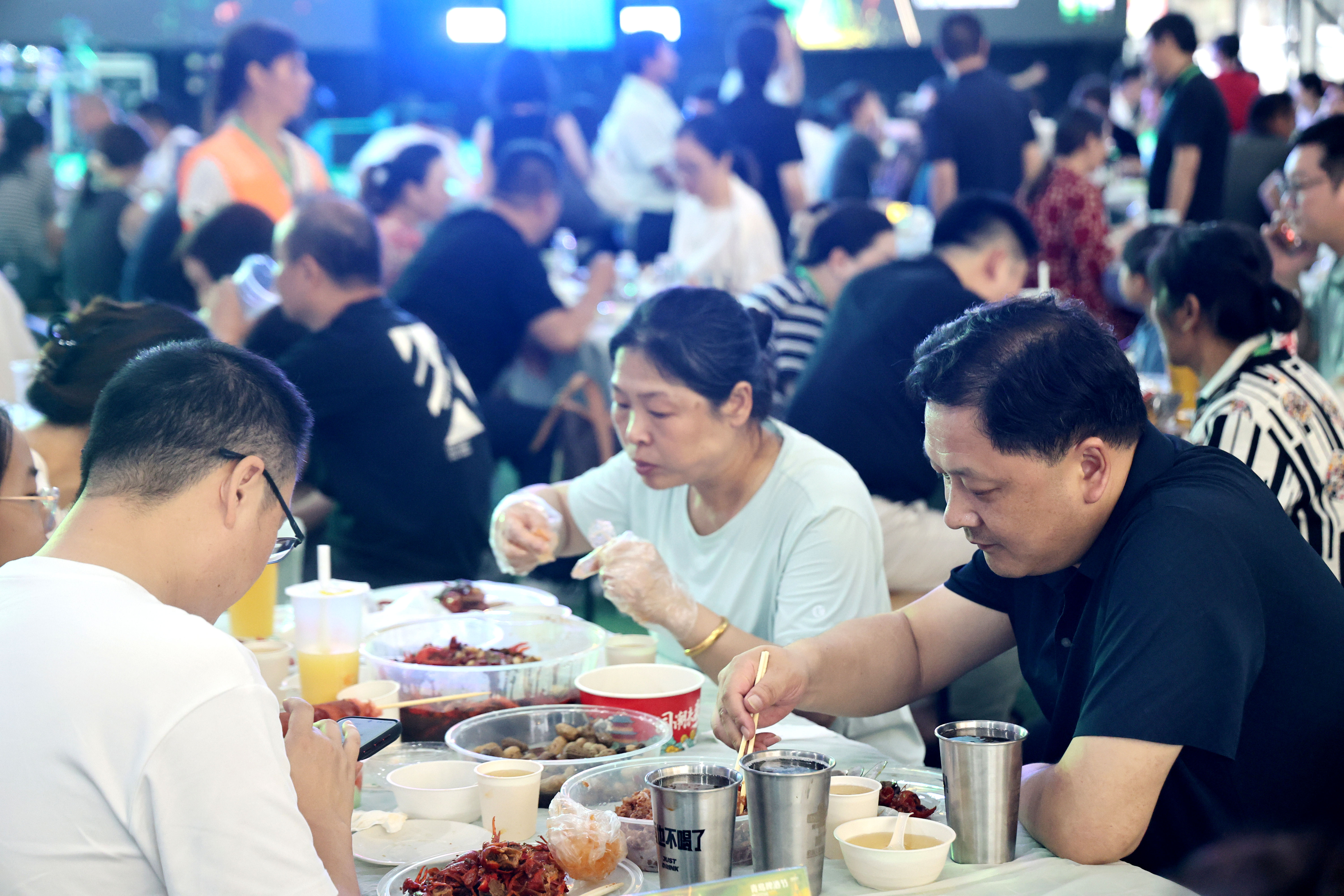 当音乐撞开啤酒的雪白泡沫,整片江海都随之干杯!嗞嗞作响的鱿鱼、麻辣鲜香的小龙虾、原汁原味的启东海鲜……走进嘉年华现场,美食种类应有尽有,每一道都是下酒的绝佳选择。香醇的啤酒遇上鲜美的海鲜,无论是坐在大棚内欣赏舞台上的精彩表演,还是漫步在各个特色摊位之间,都能让人沉浸在这充满烟火气的夏日狂欢中。“谁说南通没有夜生活,这里的氛围感太赞了。”上海游客林丽连续两天来到嘉年华现场,看演出、喝啤酒、吃海鲜。