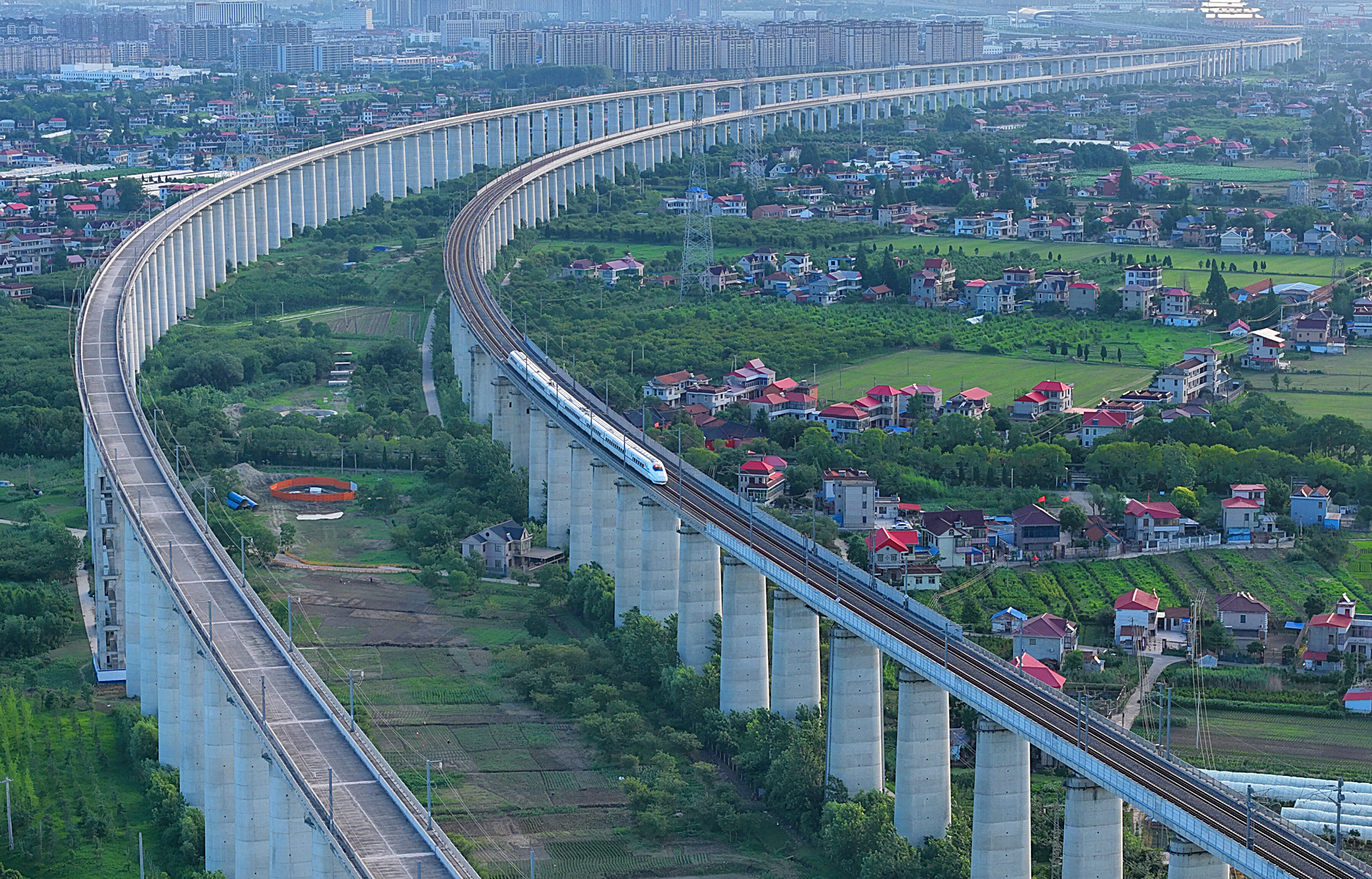 2025年7月1日,动车组在沪苏通铁路南通段线路上行驶。当日,2025年铁路暑期运输全面启动,其间,长三角铁路预计发送旅客1.9亿人次以上,同比增幅6.7%,创历史新高。