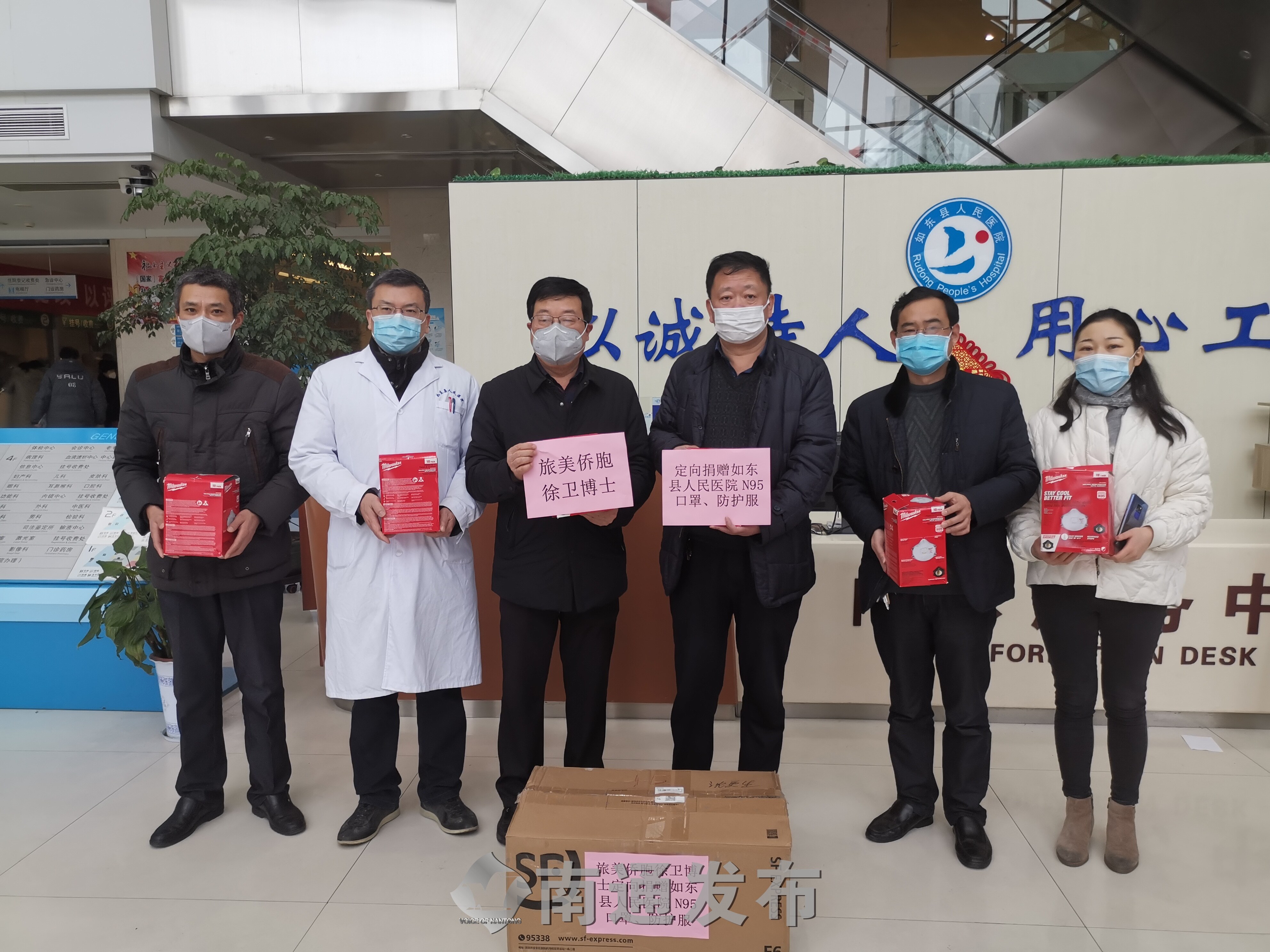 疫病无情,人间有爱。2月1日,香港如东同乡会副会长、香港高和皮鞋公司董事长刘俊华(祖籍如东大豫)响应江苏旅港同乡联合会“携手抗疫共度难关”捐款倡议,率先捐款3000港元。如东侨企、睛明眼镜商行通过县红十字会向县疫情防控指挥部捐赠100只护目镜,支援坚守疫情防控一线的医护人员。