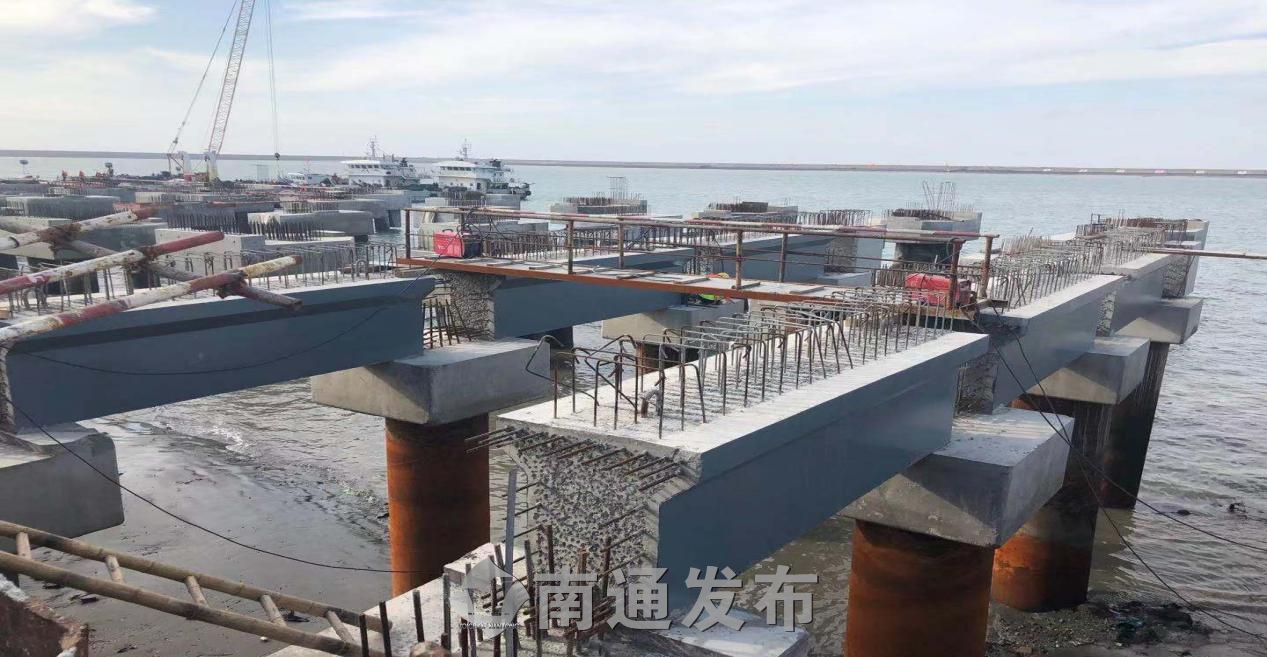 吕四港已经成为各方关注的投资热土。通州湾新出海口吕四起步港区六大工程全面推进,4月24日,通州湾新出海口吕四“2+2”码头10#泊位顺利完成首榀引桥横梁架设,目前吕四“2+2”码头10#-11#泊位进入全面梁板安装施工阶段。中交四航局承建的吕四“2+2”码头项目整体进度已超50%,根据工期计划安排,将于今年10月底完成主体建设。