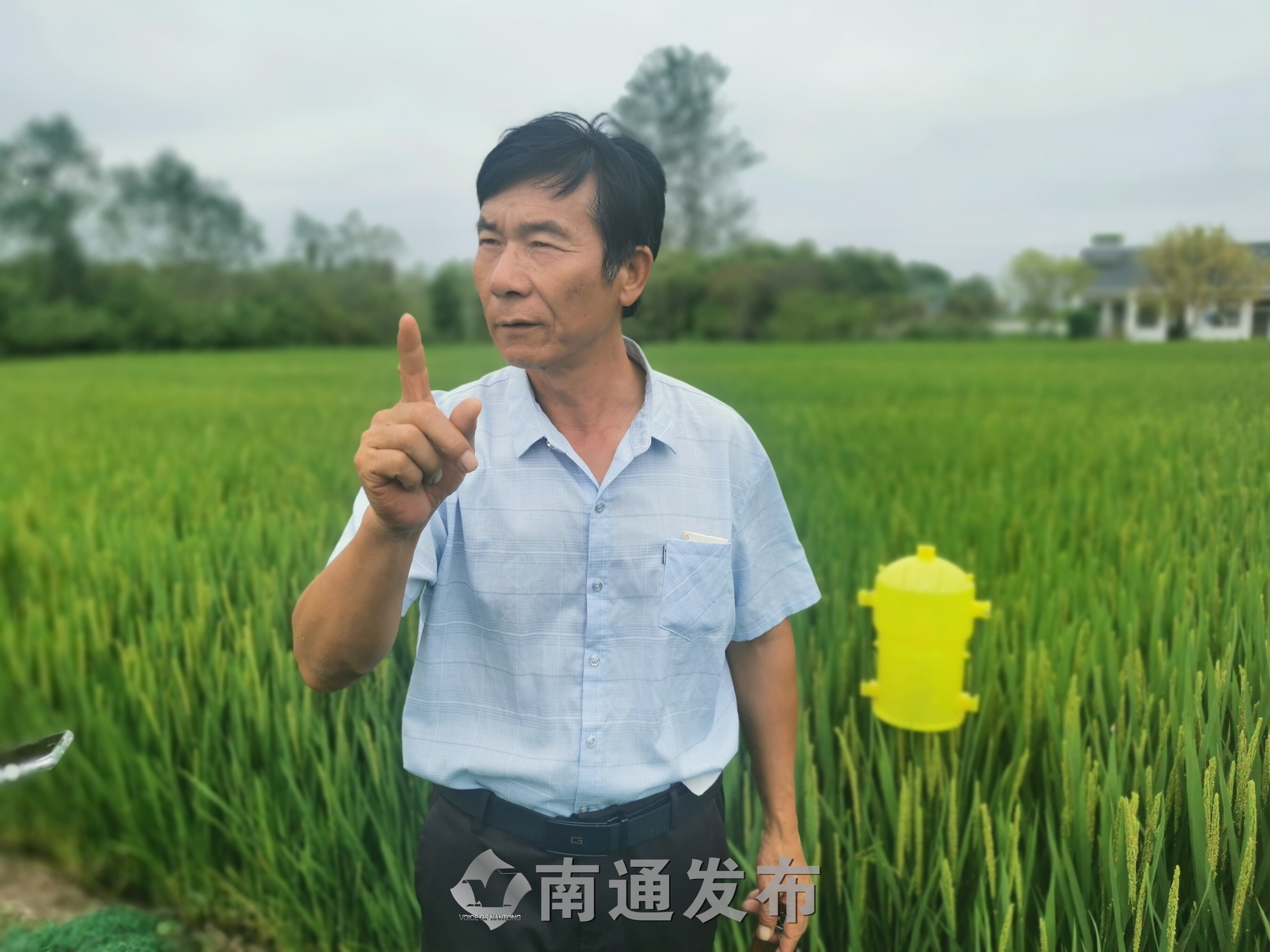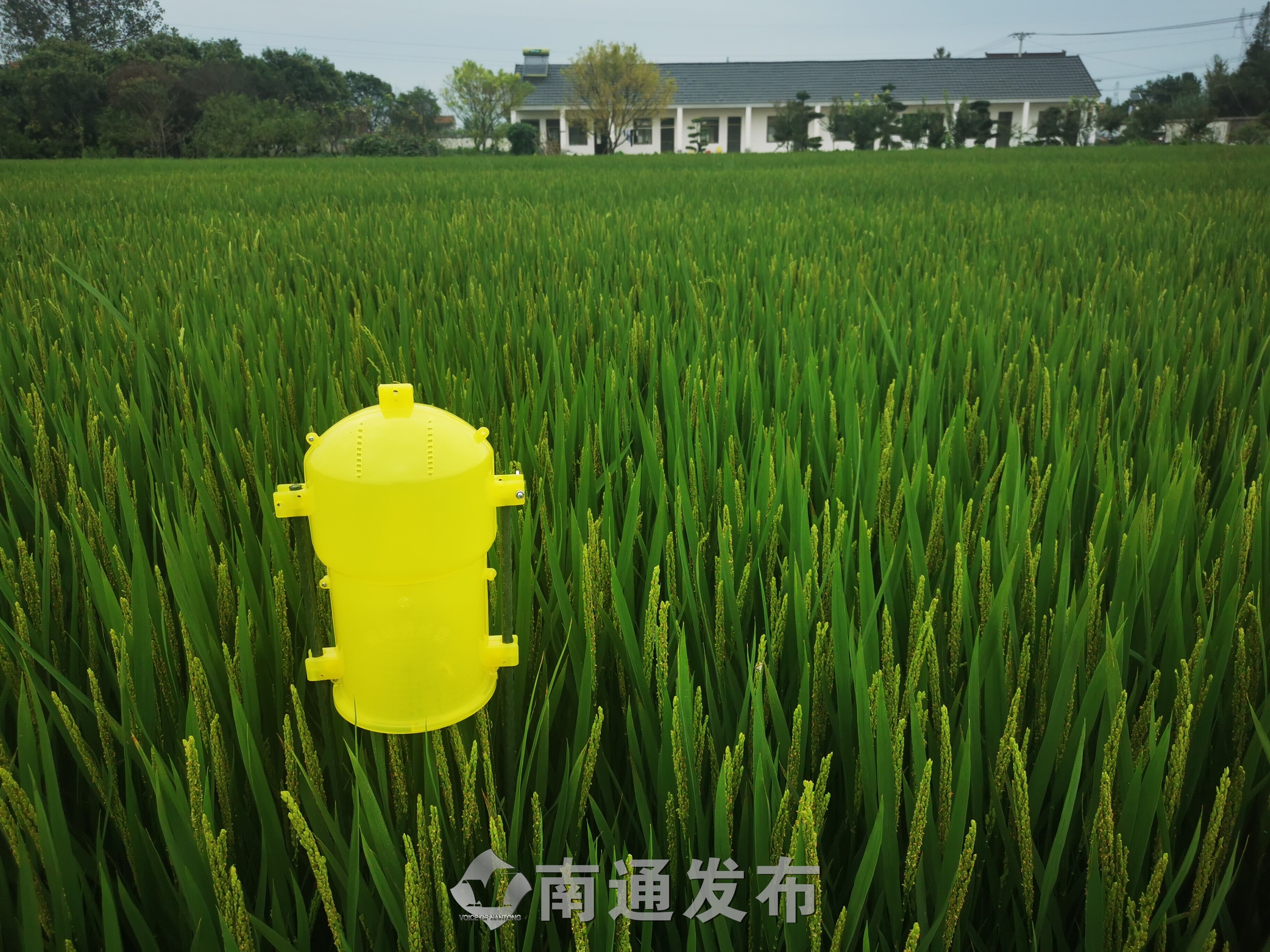 在圣耕园里,稻田边上一排黄色的螟蛾诱捕器特别显眼。水稻生长从分蘖期到抽穗期容易生螟虫,为了少用、不用农药,王华通过请教通州植保站农业技术专家,采用寄生蜂以虫制虫、生物制剂防治水稻病害等方式有效替代了化学农药。