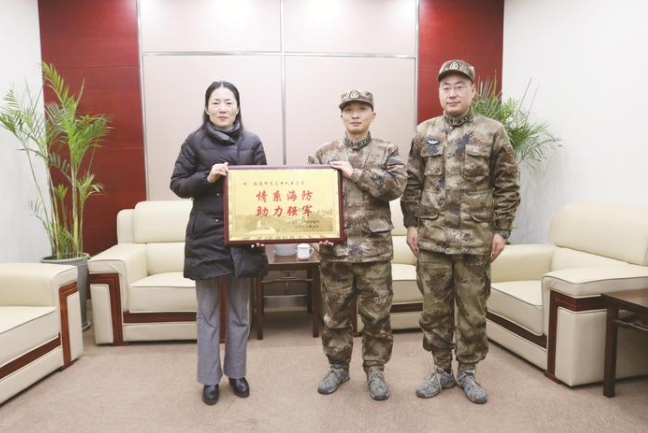 驻通部队给市退役军人事务局送来锦旗